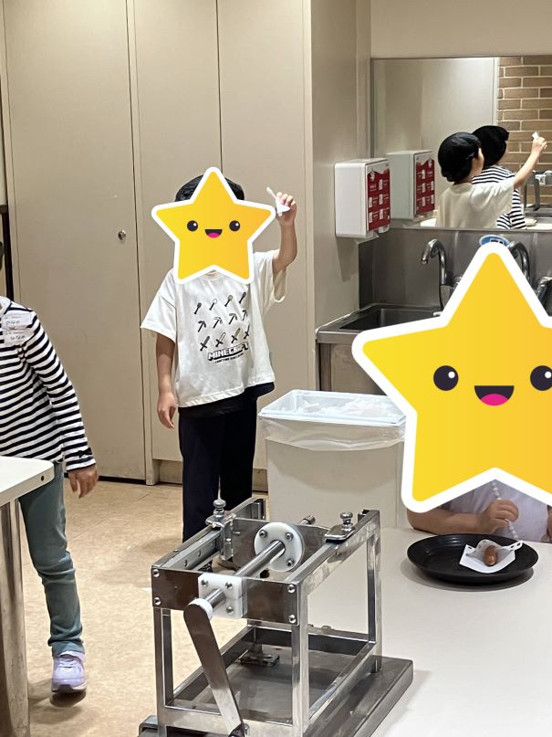息子がシャウエッセン体験でソーセージ作りをした